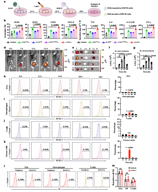 此外,AVAX在体内主要被肿瘤细胞摄取,为HO-1基因敲除提供了便利;同时对BMDCs、T细胞和巨噬细胞几乎无影响,也未产生明显毒性作用。